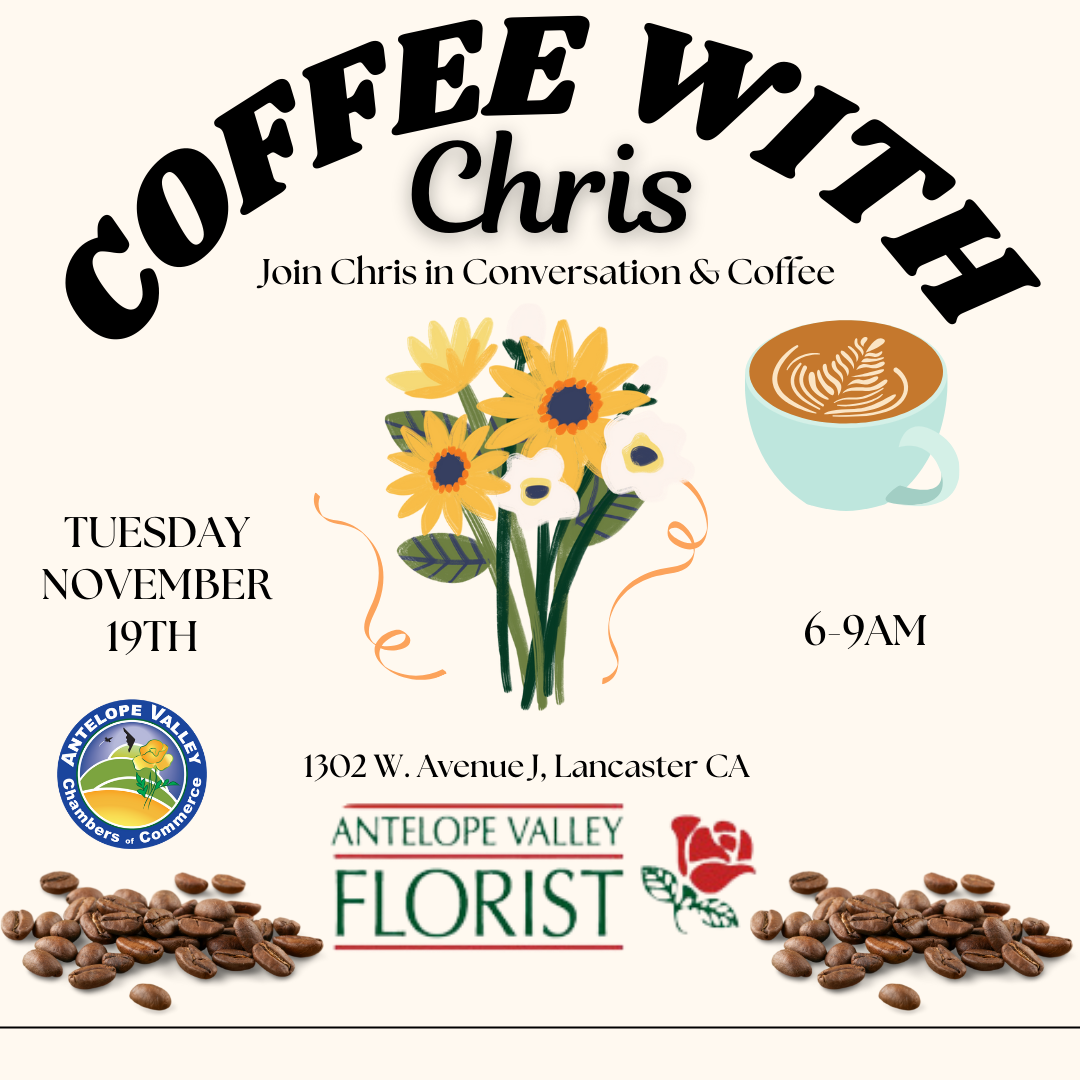| 11/19/2024 | This is a wonderful opportunity to chat with, Chris the Owner of AV Florist, share your thoughts, and discuss important topics affecting our community—all over a warm cup of coffee! Whether you’re a long-time resident or new to the area, we’d love to see you there. Bring your questions and ideas, and let’s enjoy a morning of connection and conversation. We look forward to seeing you! more info... |